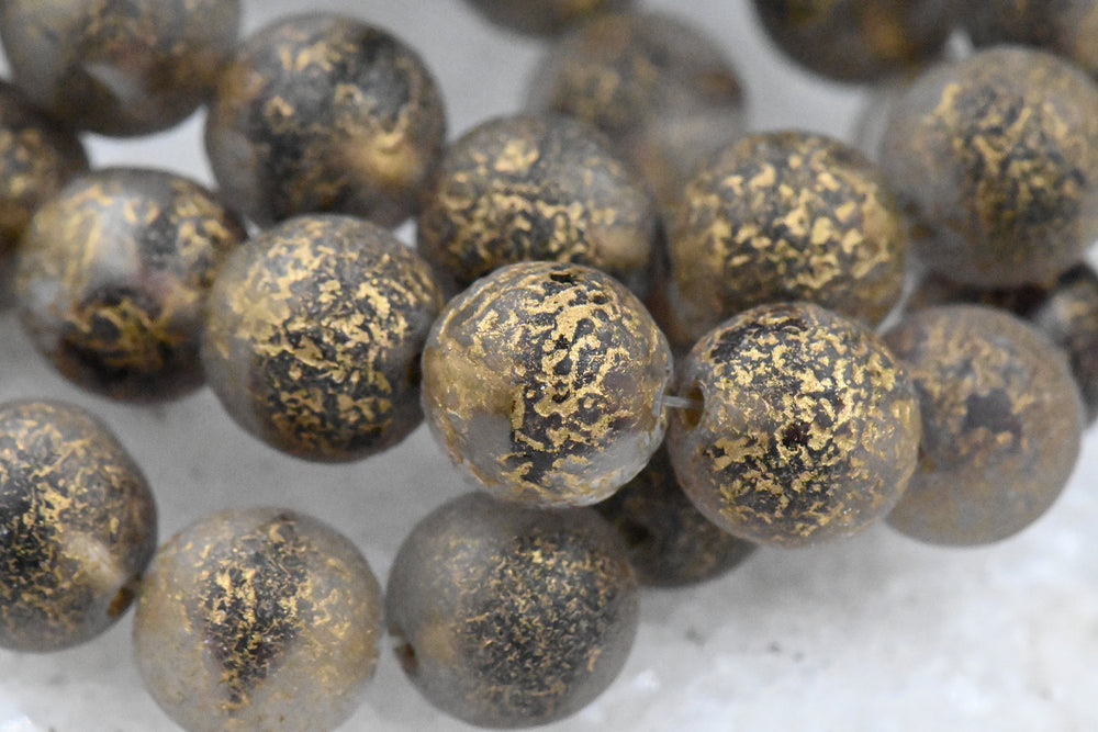 8mm Round Druk Spice Gold with an Etched Gold Finish Eggplant Accents