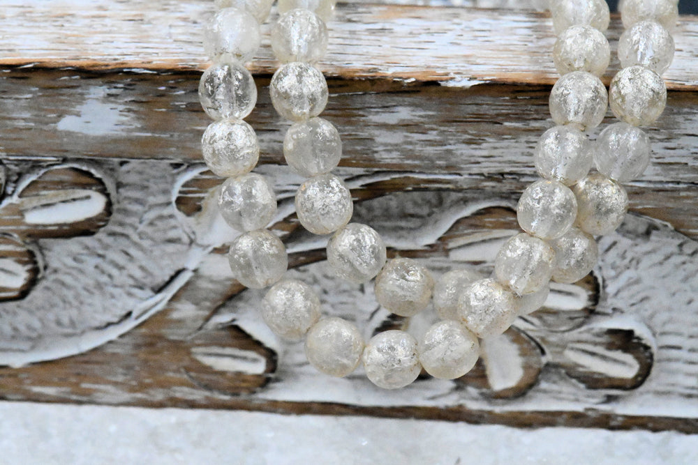 6mm Round Druk, 30pc Transparent Glass with a Mercury and an Etched Finish